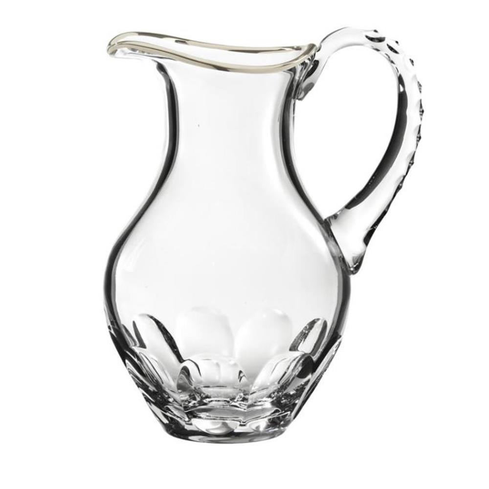 Der Wasserkrug Palais Platin in klar transparent aus dem Haus ARNSTADT KRISTALL entstammt langjähriger Handwerkskunst. Mundgeblasen und Handgeschliffen entstehen ware Unikate aus Kristallglas. Dieser Krug ist mundgeblasen und von Hand geschliffen und besticht durch ein Gewicht, was die Qualität von echtem Bleikristall wieder gibt. Ein ideales Geschenk für Liebhaber gepflegter Präsentation und hochwertigen Kristallglas, z.B. zum Geburtstag, zum Jubiläum oder zu Weihnachten.