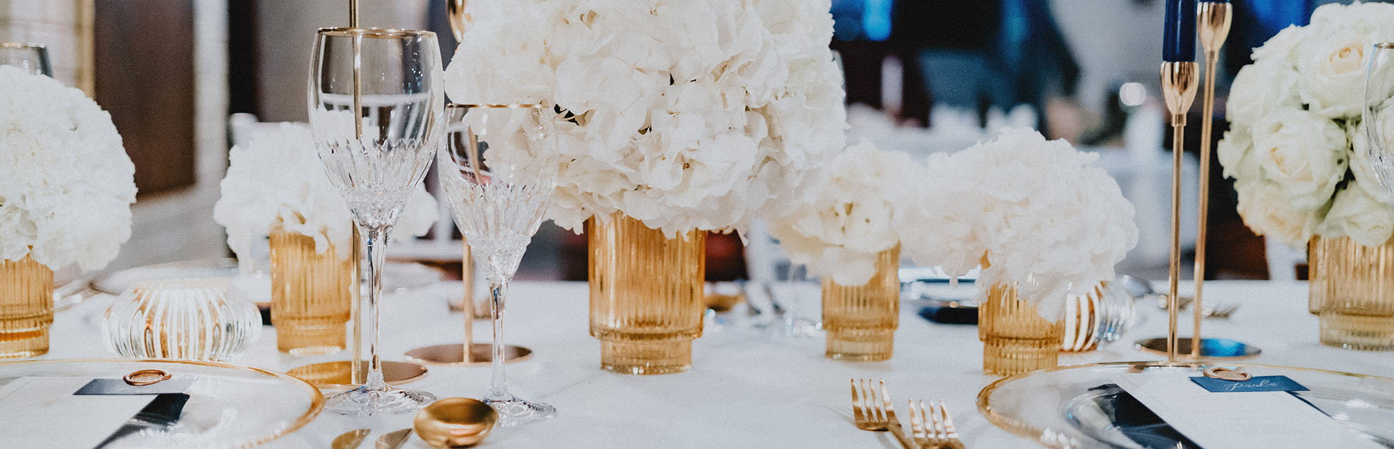 Und was wäre eine Tafel ohne einen bunten Blumenstrauß? Dieser sollte dann natürlich -ergänzend zur Tischgestaltung in einer Kristallvase zur Geltung gebracht werden. Jedoch handelt es sich hierbei auch um einen idealen Alltagsgegenstand, der sich super in eine bestehende Einrichtung integrieren lässt.